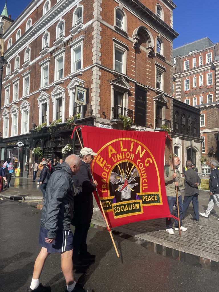 I went to the counter-protest to the Unite the Kingdom demonstration in September, before the course started. Despite being massively outnumbered, I saw an amazing selection of trade union banners in the counter-protest crowd.
