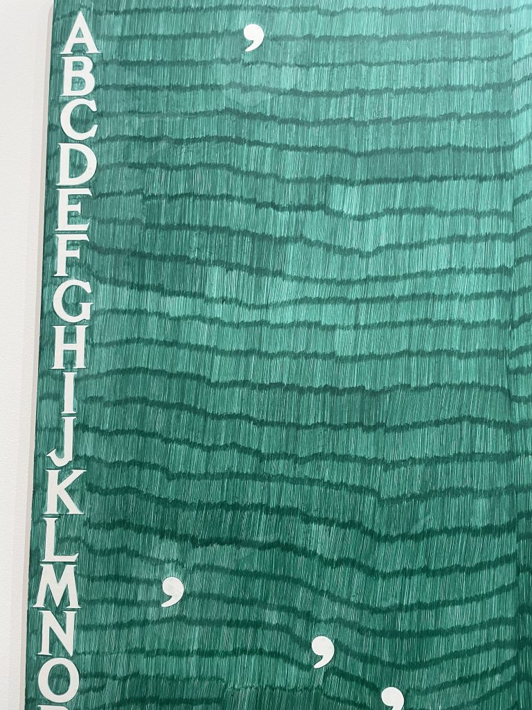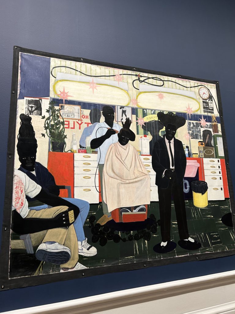 Kerry James Marshall at the Royal Academy. I loved this exhibit, it was amazing to see his work in person. I particularly liked the use of text and painted lettering, symbolism, collage and prevalent use of glitter. I also thought the way he paints a space is so unique and really tells a story, as shown in De Style (1993), above.